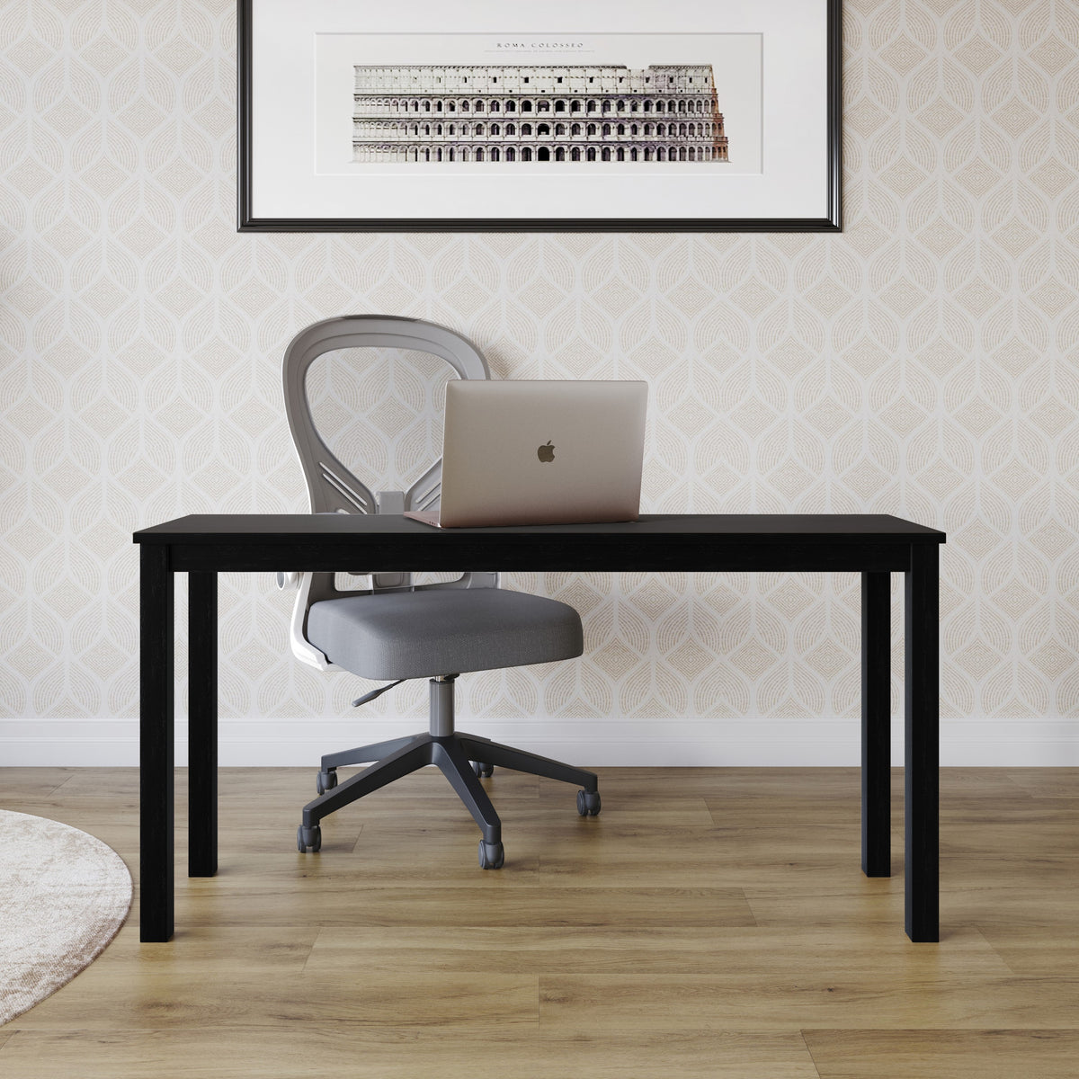 5-Piece Sanford Dining Set, Black/Gray, Rectangular table, Middle-divided top, Slat-back cushioned chairs, Comfortable seating, Sturdy square legs, Modern style, Durable construction