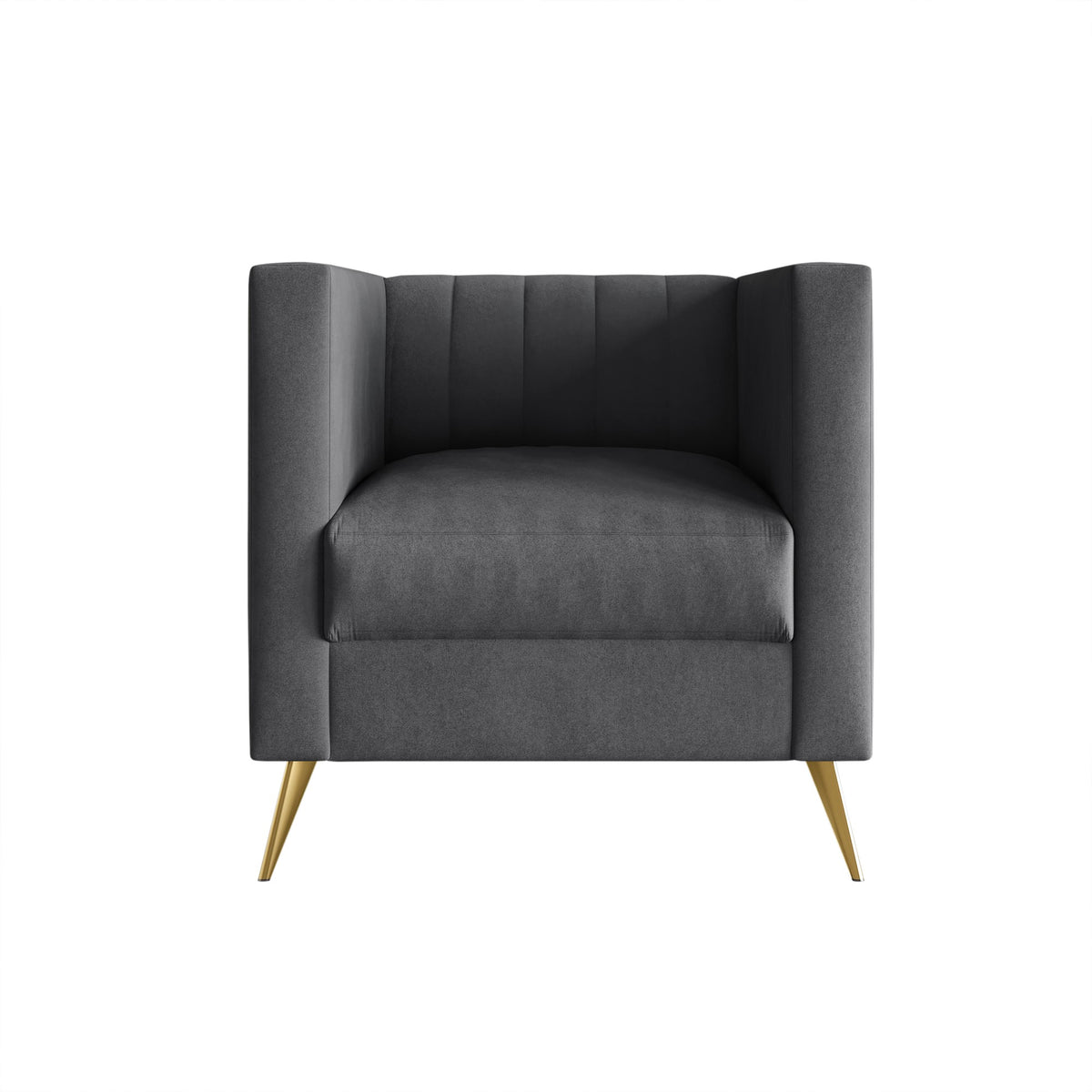 Weiss Velvet Square Arm Sofa with Channel-Tufted Back and Gold Metal Legs, Modern Upholstered Living Room Seating, Dark Gray