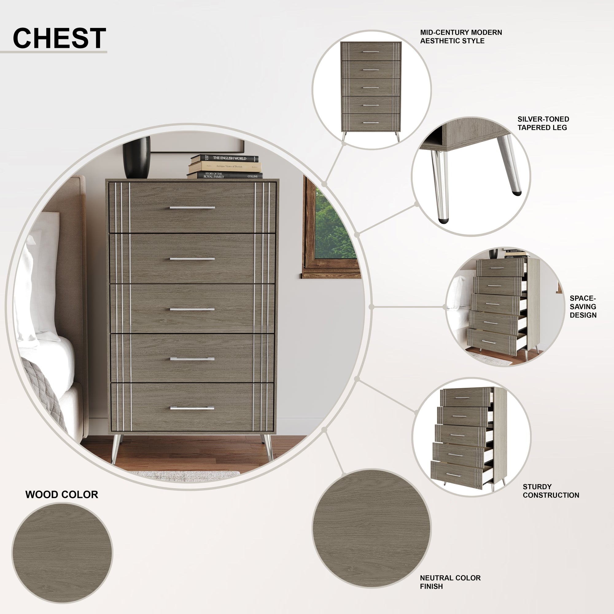 Ashwin Queen Bedroom Set with Chest, Dresser, and Nightstand featuring Solid Construction, Gray