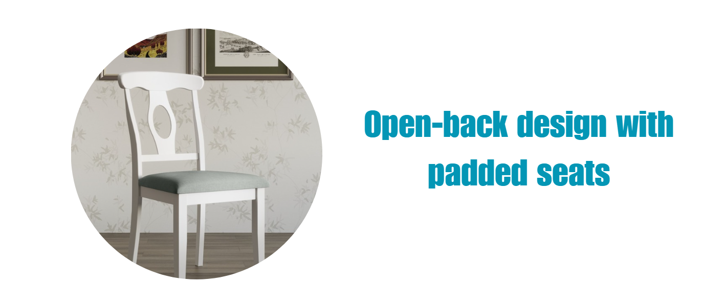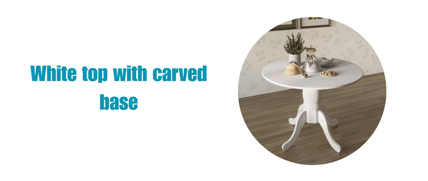 Bring a mid-century modern design dining set into your dining room with a beautiful white round shape table top consisting 36" in length, 36" in width, and 29.1" in height. It is provide ideal space sit four people comfortably. The dining table designed with pedestal base together with charming carved detail and add a touch of traditional into modern look. In addition, the dining chair is for an open look along with comfortable gray padded chair seat and sturdy white chair legs. Perfectly suit for compact space and white color can easily match to any color palette or decoration theme you want. It is easy to assemble.