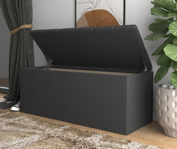 Betsy Twin Button Tufted Upholstered Panel Bed Frame with Storage Bench, Black, Easy Assembly