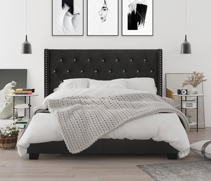 Aiden King Upholstered Panel Bed Frame with Tufted Headboard for Adult, Sillver Gray, Easy Assembly