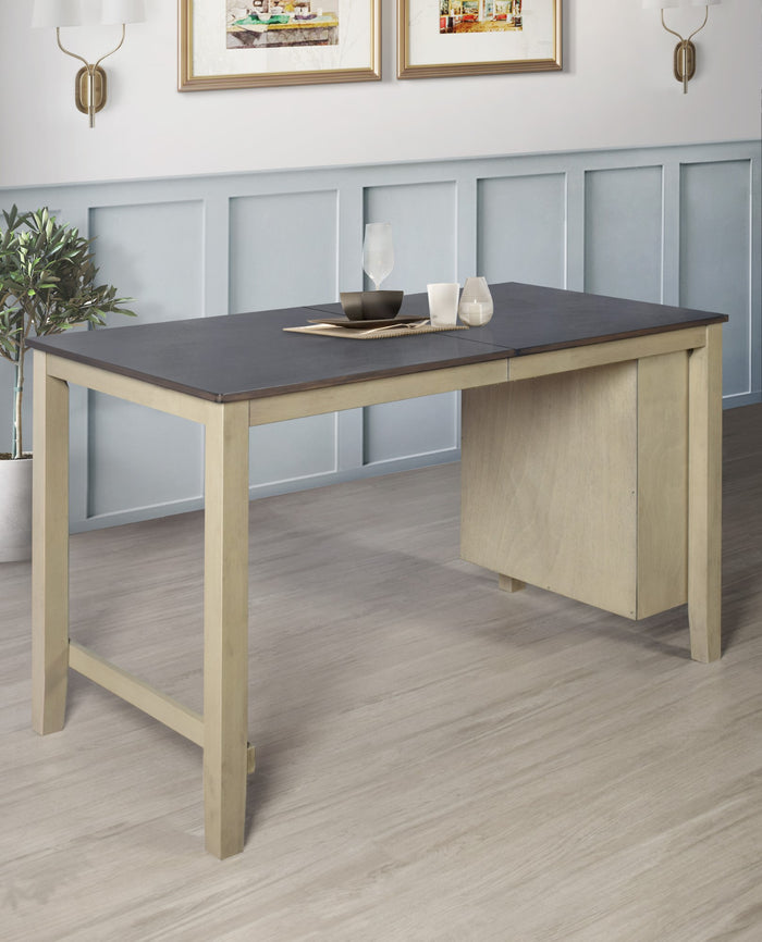 5-Piece Africa Counter Height Dining Set, Antique Gray/Warm Gray, Rectangular table with shelves, Armless cushioned chairs, Comfortable seating, Modern style, Space-saving, Durable construction