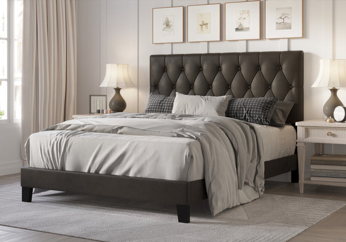 Carolina Queen Panel Bed Frame with Button-Tufted Headboard and Storage Drawers, Gray, Easy assembly