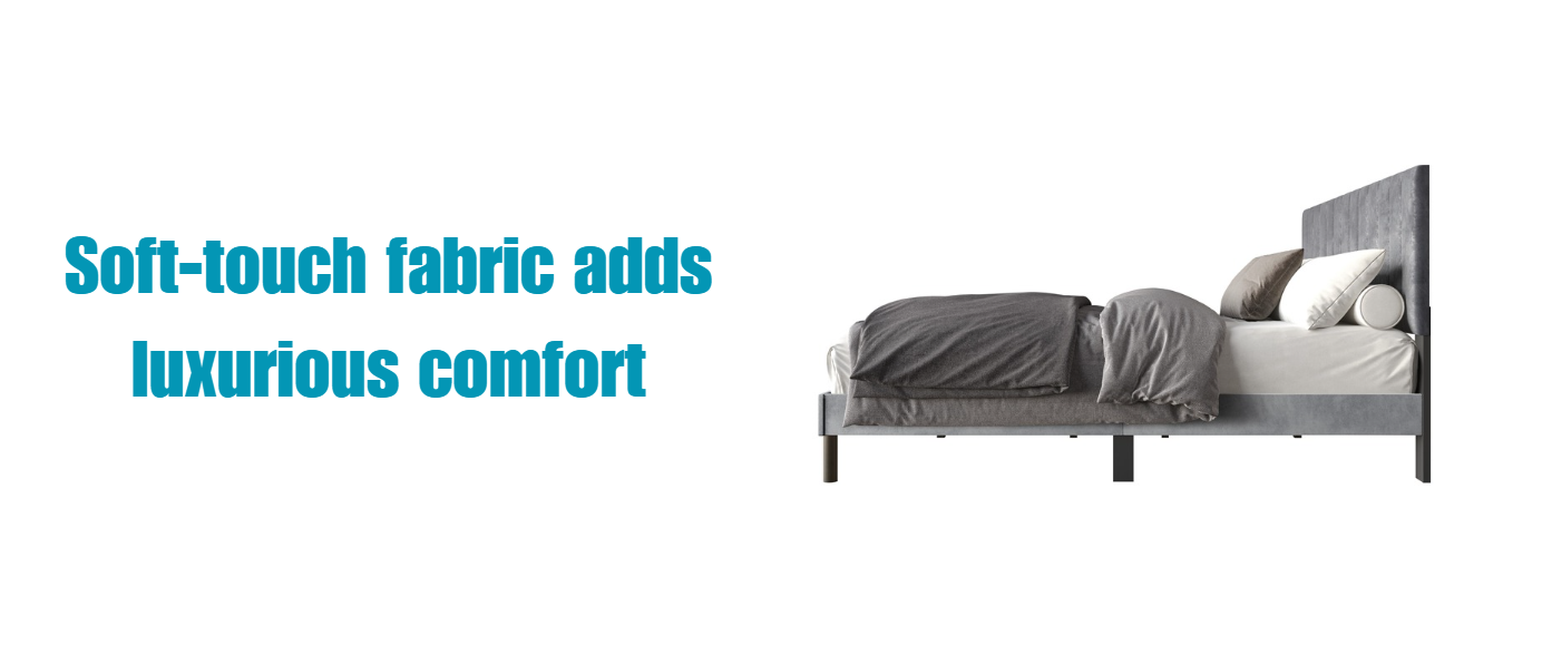 This upholstered panel bed showcases modern, clean lines and minimalist detail that enhance any space. The headboard is filled with foam and designed with classic vertical channel tufting, wrapped in luxurious plush velvet, and provides comfort and relaxation for leaning up against while you read before bed. This bed required a box spring and was sold separately. Four bed sizes are available to choose from, along with two color options, black and gray, to match your preferences.