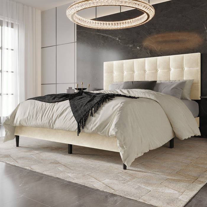 Parma Panel Bed Frame with Vertical Channel Tufted Headboard and Sturdy Metal Frame Construction, Beige Corduroy