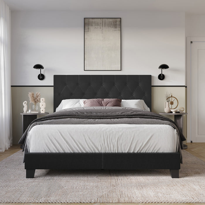 Aiden King Upholstered Panel Bed Frame with Tufted Headboard for Adult, Sillver Gray, Easy Assembly