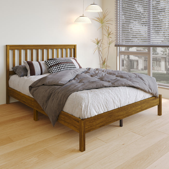 Fresno Twin Wood Platform Bed Frame with Open Slat Panel Headboard, Gray, Easy Assembly