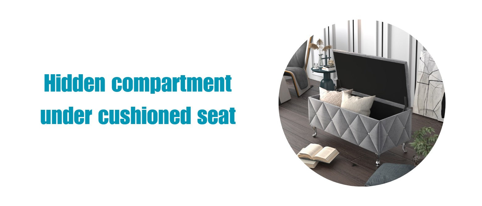 Bodhi Upholstered 30" Flip Top Storage Bench with Diamond Tufted Velvet Seat, Spacious Hidden Storage, and Multi-Purpose Rectangular Design for Bedroom or Living Room, Silver Gray