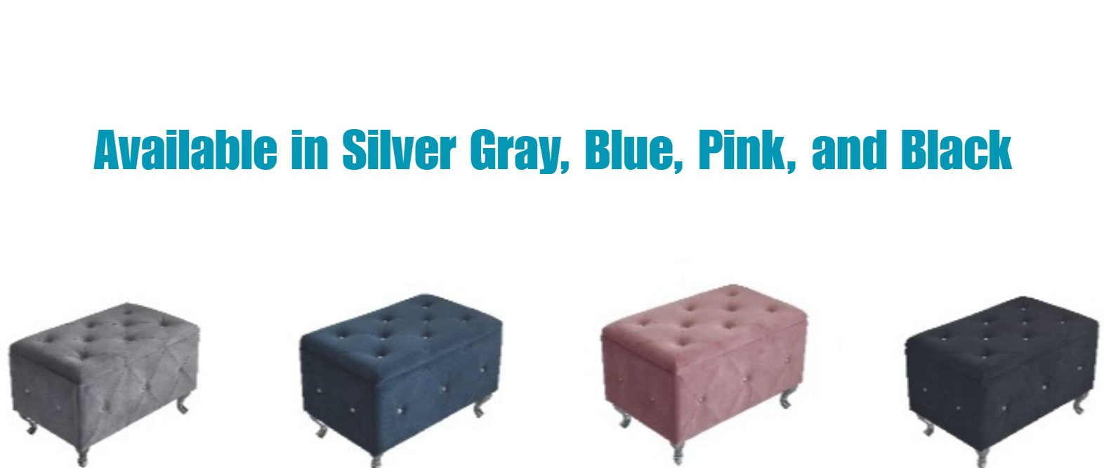 • Smooth velvet upholstery in silver gray, blue, pink and black