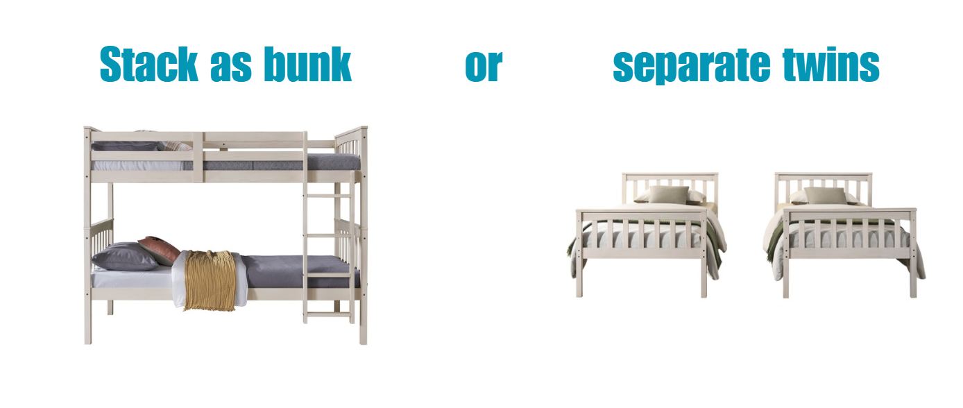 • It can be stacked into bunk bed or unstacked into two separate twin beds