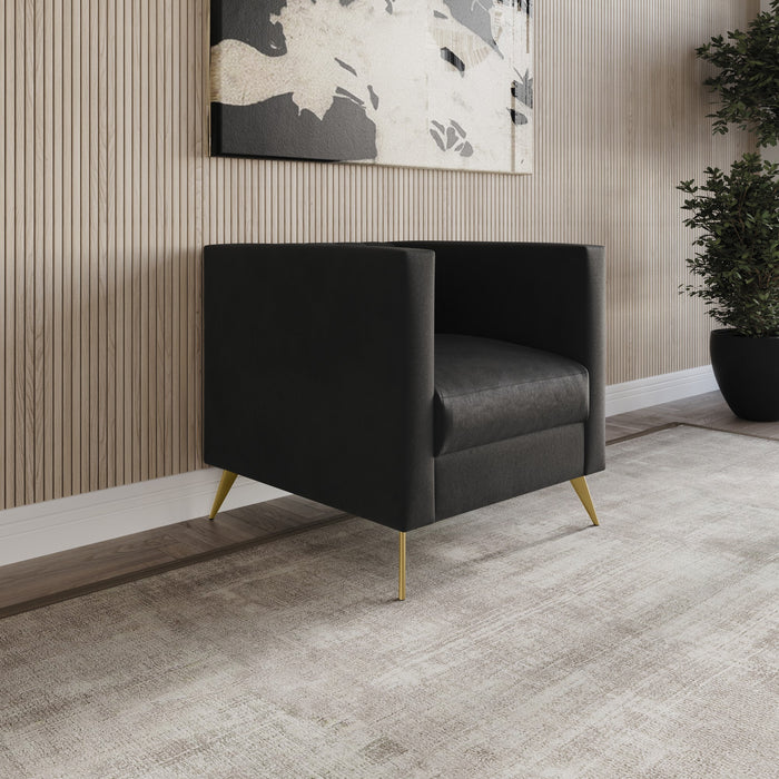 Weiss Velvet Square Arm Chair with Channel-Tufted Back and Gold Metal Legs, Modern Upholstered Living Room Seating, Dark Gray