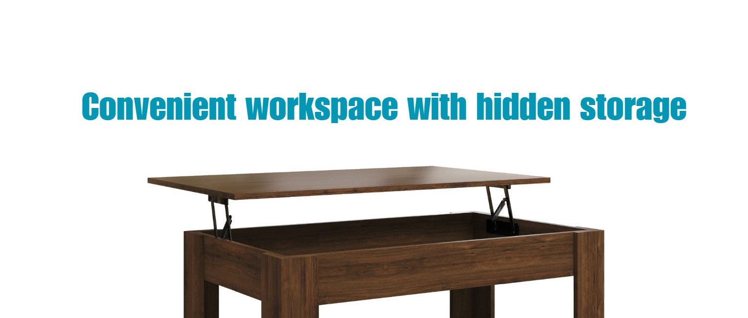 Features a convenient lift-up tabletop that creates a handy workspace or dining surface, with hidden storage underneath for added functionality.
