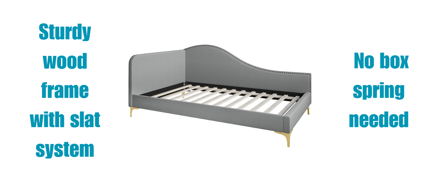 Lorettta Upholstered Daybed with Sloped Back and High Arm, Nailhead Trim, Gray – Adult Guest Room, Bedroom, and Living Room, Easy Assembly