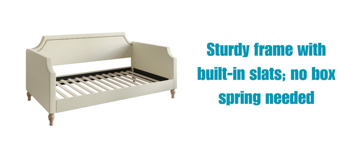 This daybed includes a built-in slat system that provides strong, reliable mattress support for enhanced comfort and stability.