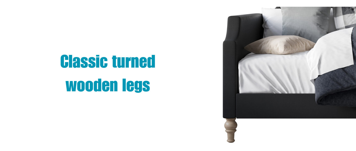 This versatile twin upholstered daybed seamlessly combines the functionality of a sofa and a bed, making it ideal for both living rooms and guest bedrooms. The backrest is adorned with elegant nailhead trim, adding a touch of sophistication, while the high-quality polyester blend upholstery offers a timeless, traditional look. Classic turned wooden legs complete the design, and it’s available in your choice of Gray, Beige, or Black to complement any decor.