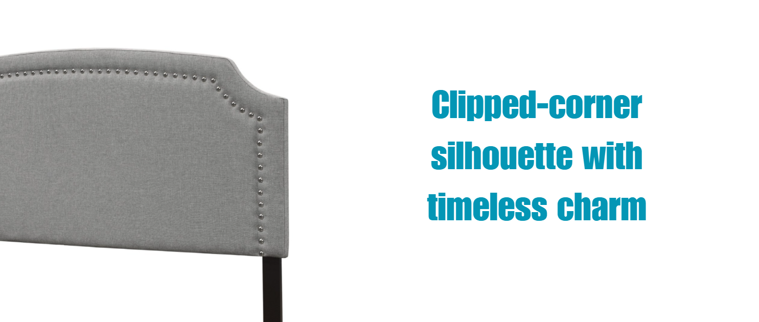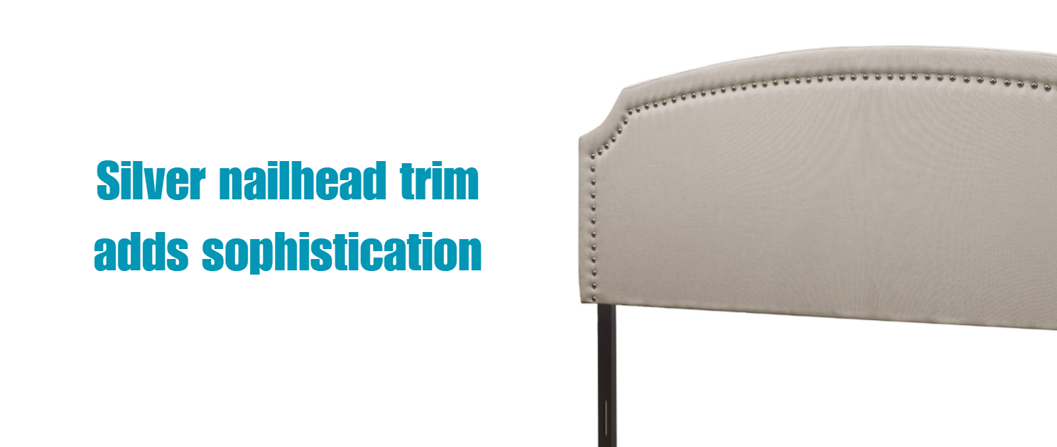 With the assistance of this simple clipped-corner silhouette headboard design will complete your bedroom's look. The polyester upholstery headboard is decorated with silver-tone nailhead trim for a sophisticated and modern look and shows a hint of French country design. It can be adjusted to sit in two distinct heights and available in Gray and Warm Gray to match your room decor.