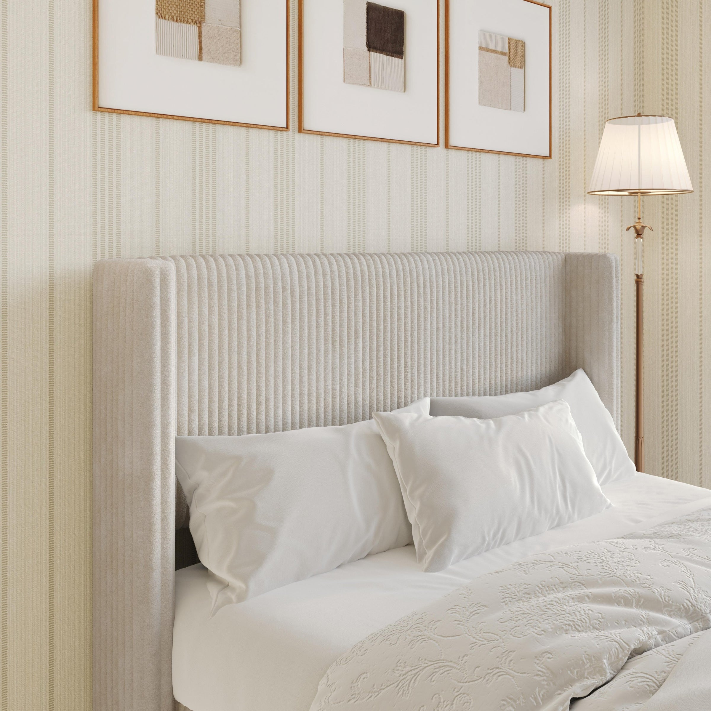 Home Design Lenox Upholstered Wingback Headboard, Soft Corduroy, Easy to Assemble