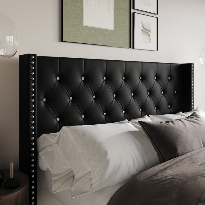 Grinnell Twin Tufted Upholstered Headboard with Wingback Design & Button-Tufted Detail, Gray, Easy Assembly