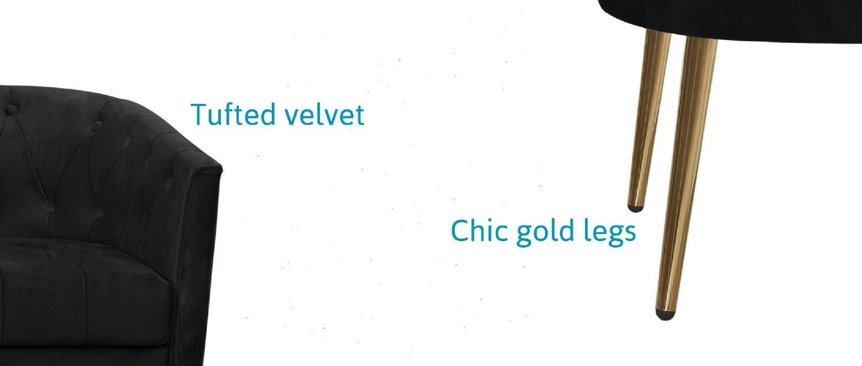 - Upholstered in soft velvet with tufted backrests and seats for a luxurious look