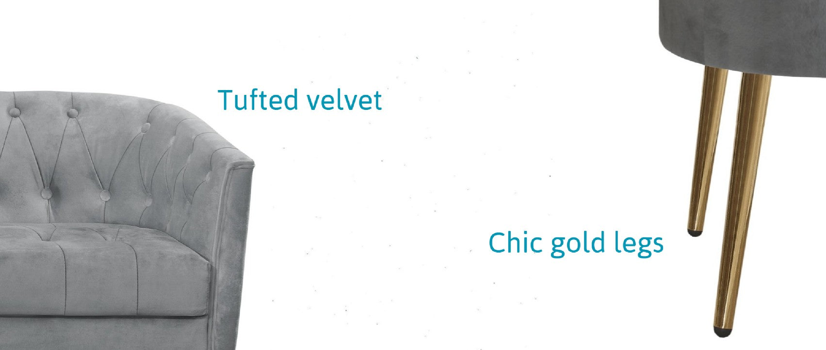 - Upholstered in soft velvet with tufted backrests and seats for a luxurious look