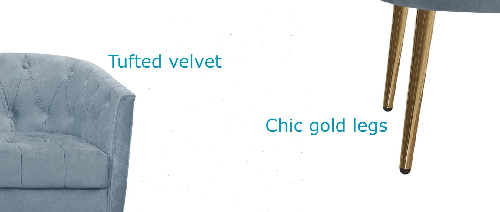• Upholstered in soft velvet with tufted backrests and seats for a luxurious look