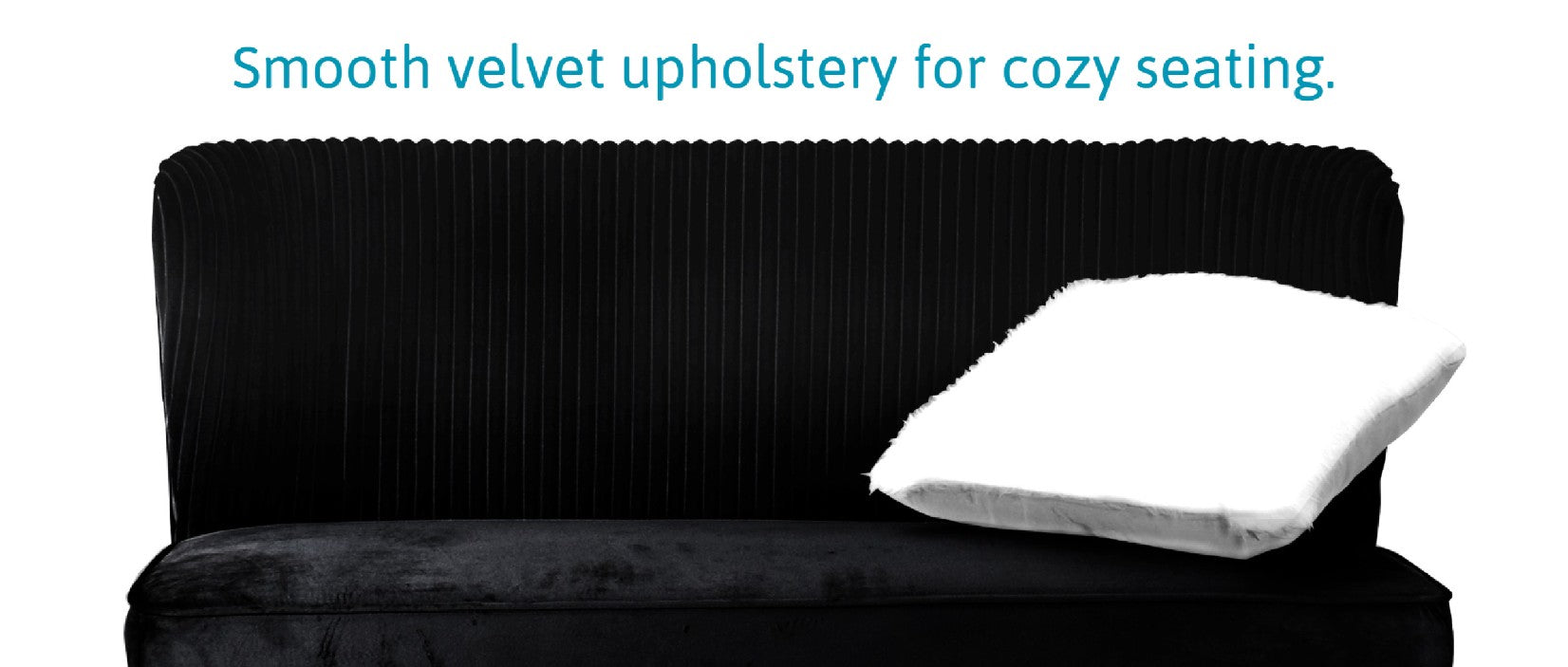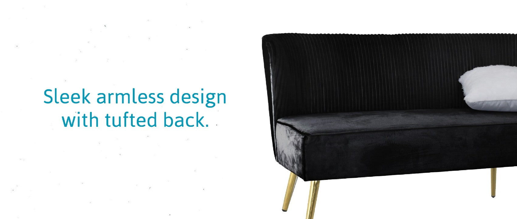 Elevate your living room with the Hestie Velvet 3-Piece Living Set, blending sleek contemporary design with everyday comfort. Upholstered in smooth velvet, this set includes a side chair, loveseat, and sofa, each featuring a chic armless silhouette with vertical channel-tufted backrests for a refined touch. Four flared golden metal legs complete the look, adding a hint of glamour while ensuring sturdy support. Perfect for both entertaining and relaxing, this versatile set brings modern style and sophistication to your home.