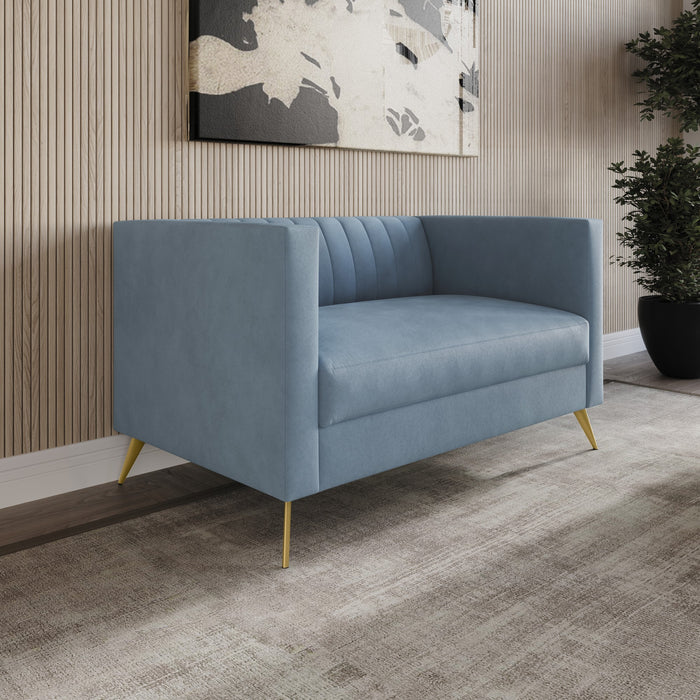 Kurtis Square Arm Loveseat with Tufted Velvet Upholstery and Gold Metal Legs, Flared Arms, Modern Living Room Seating, Gray
