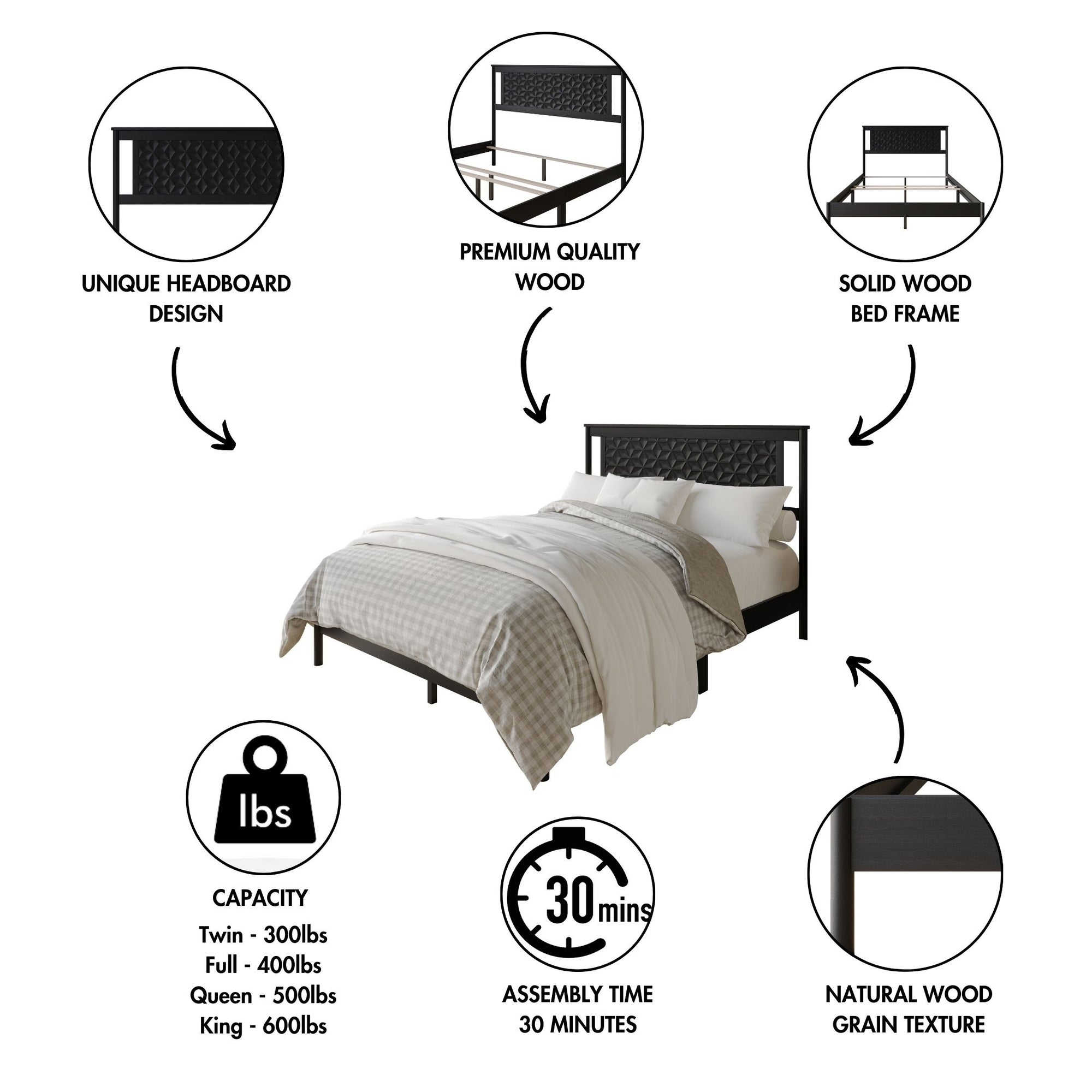 • Unique and bold headboard adds a modern focal point to your space.