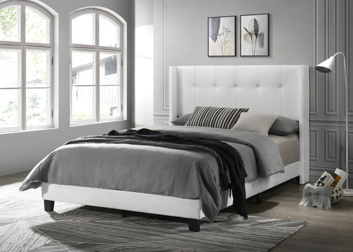 Brady Twin Tufted Wingback Upholstered Panel Bed Frame, Silver Faux Leather