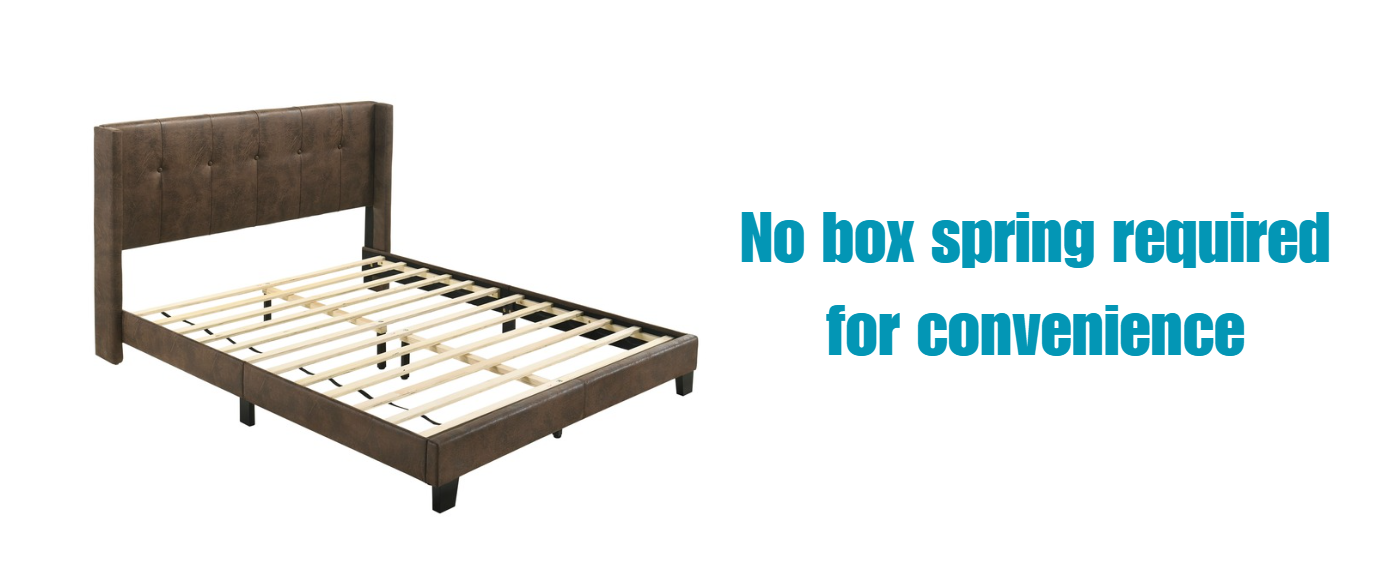 Elevate your bedroom with this stylish platform bed. Perfectly combining comfort and chic design, this platform bed is an ideal addition to any modern bedroom. The bed features a tufted headboard that adds a touch of luxury and modern flair, while the graceful wingback design creates an inviting focal point. The headboard is upholstered in faux leather offering a chic and contemporary look. It comes with 12 sturdy slats to provide exceptional support for your mattress to ensure durability and stability.