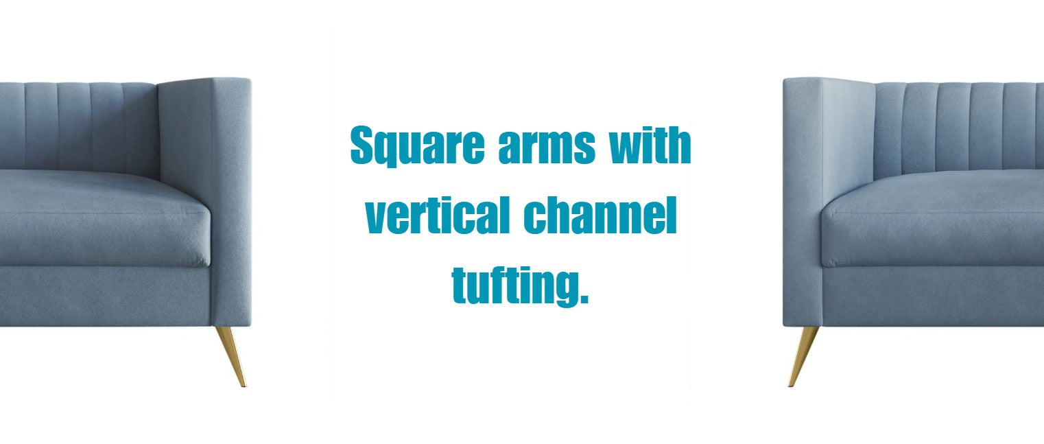 Weiss Velvet Square Arm Sofa with Channel-Tufted Back and Gold Metal Legs, Modern Upholstered Living Room Seating, Dark Gray