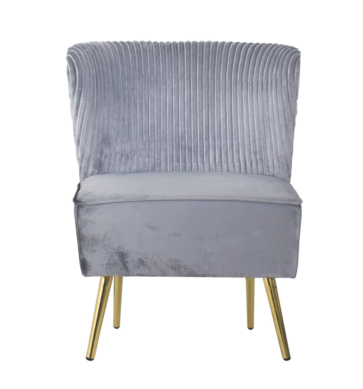 Set this modern and contemporary design living room chairs to your lovely space. The side chair, loveseat and sofa have an armless design and feature a pared-down curved backrest offering a luxe appeal. Plus, it is wrapped in smooth and comfortable velvet upholstery giving a touch of soft touch and consists of four gold metal flared legs. These three living room chairs come in three different colors to match your living space. Features: These three living room chairs are sold separately Three colors are available which include Silver Grey, Blue and Black (Blue features a two-tone color) These three living room chairs are available in three types which include side chair, loveseat and sofa