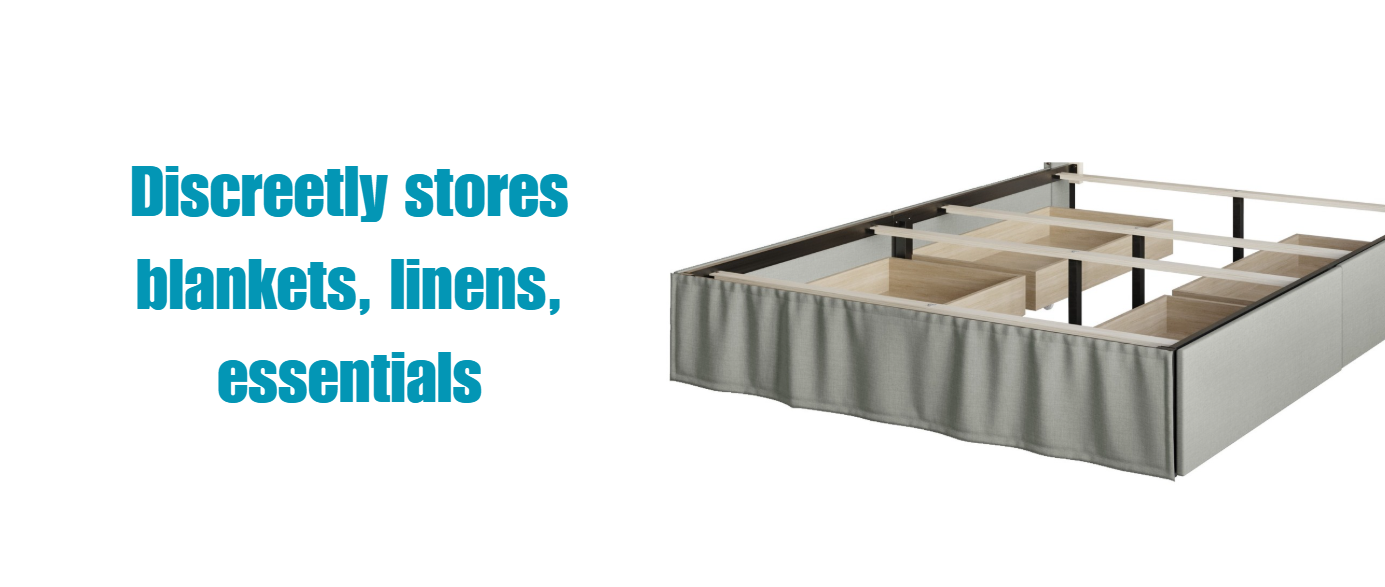 • The base includes four built-in drawers (two on each side) for ample hidden storage and provide discreet storage for linens, blankets, or seasonal clothes.